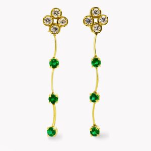 Cascade Dangle Drop Earrings with Emeralds and Diamonds in Yellow Gold