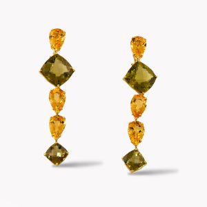 Lemon Quartz and Citrine Earrings in Yellow Gold
