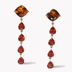 Citrine & Orange Sapphire Dangle Drop Earrings in Yellow Gold