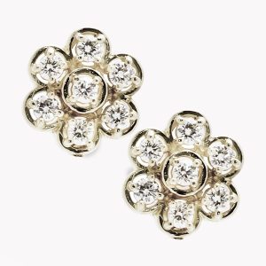 Diamond Cluster Floral Clip Back Earrings in White Gold