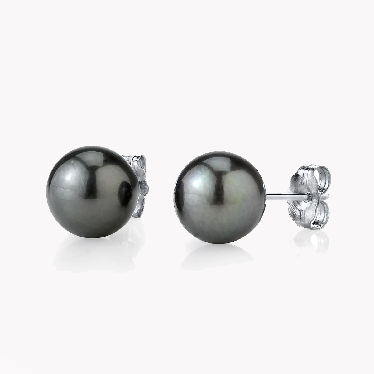 13mm Black Tahitian Pearl Studs Designed & Handmade in 18kt White Gold