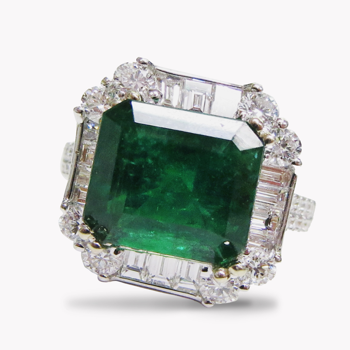 Classic Emerald & Diamond Ring in White Gold