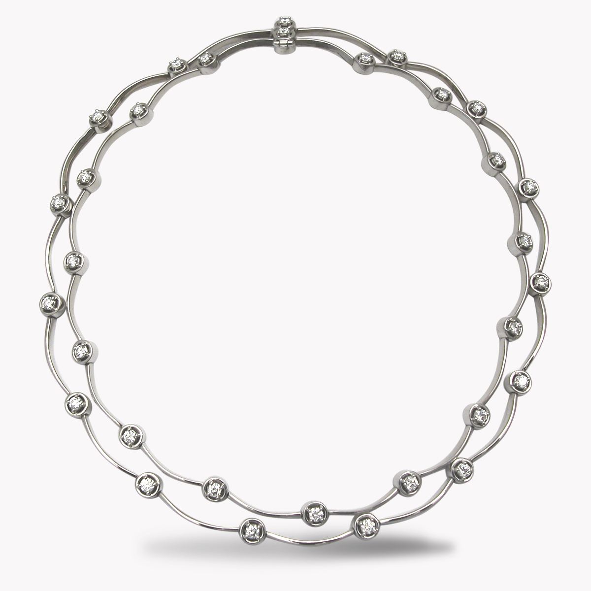 Diamond Cascade Necklace Designed and Handmade by Kaufmann de Suisse in 18kt White Gold featuring 15 Round Brilliant cut G/VS Quality Diamonds weighing a total of 2.40cts