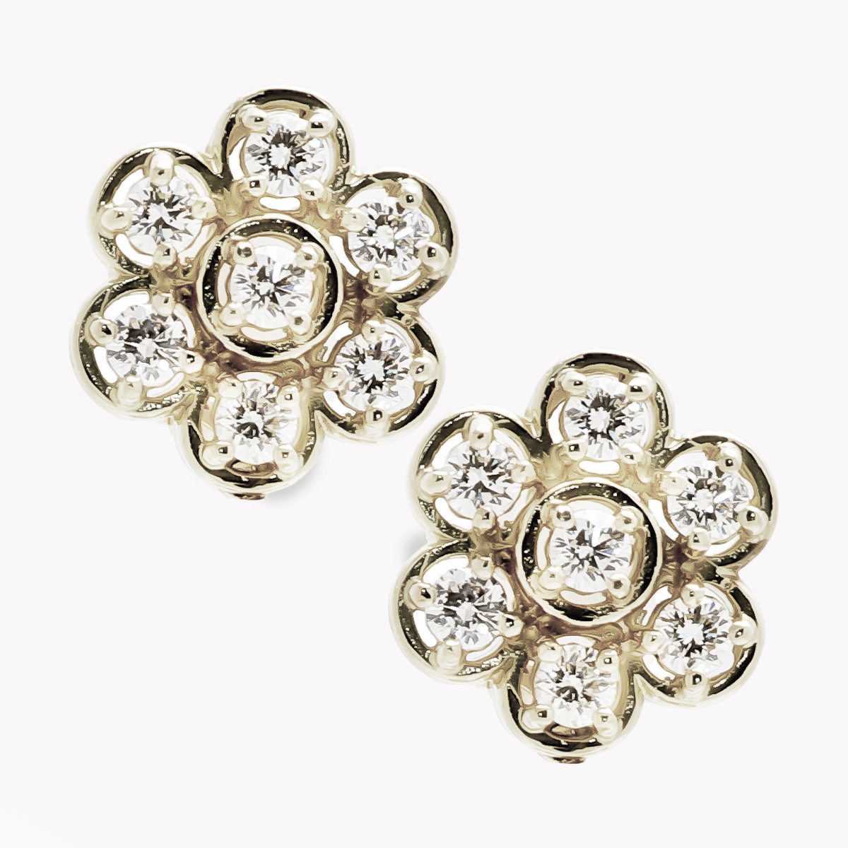 Diamond Cluster Floral Clip Back Earrings in White Gold