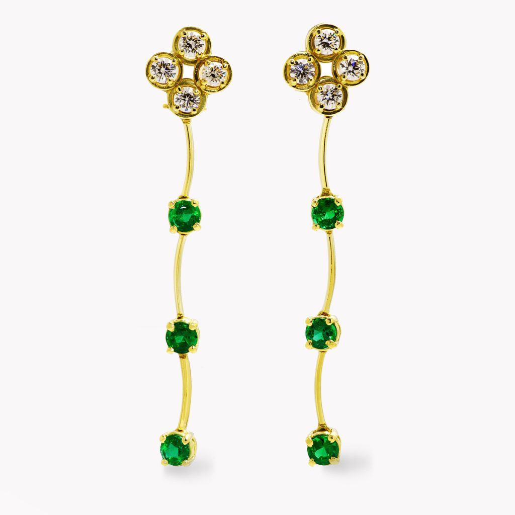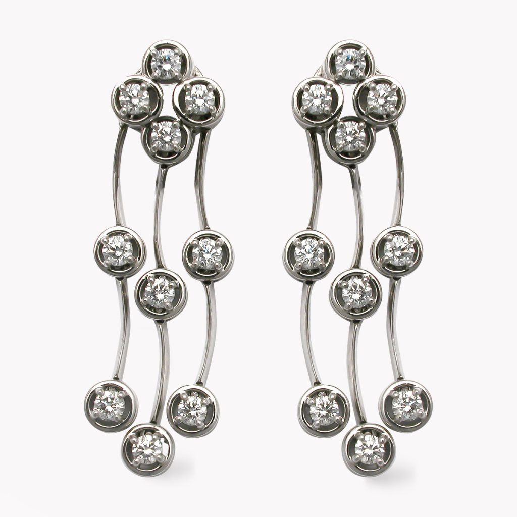 Diamond Fleurette Drop Earrings Designed & Handmade by Kaufmann de Suisse in 18kt White Gold featuring 18 Round Brilliant cut H/SI Quality Diamonds weighing a total of 2.47cts.