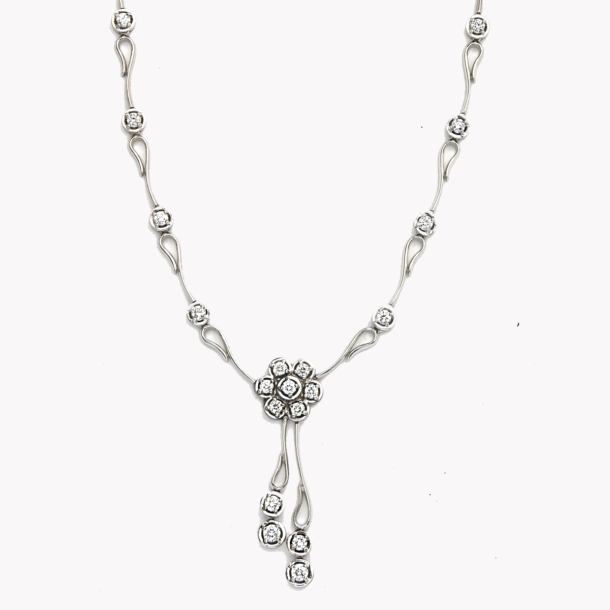 Flowing Lines Diamond Fleurette Necklace in White Gold