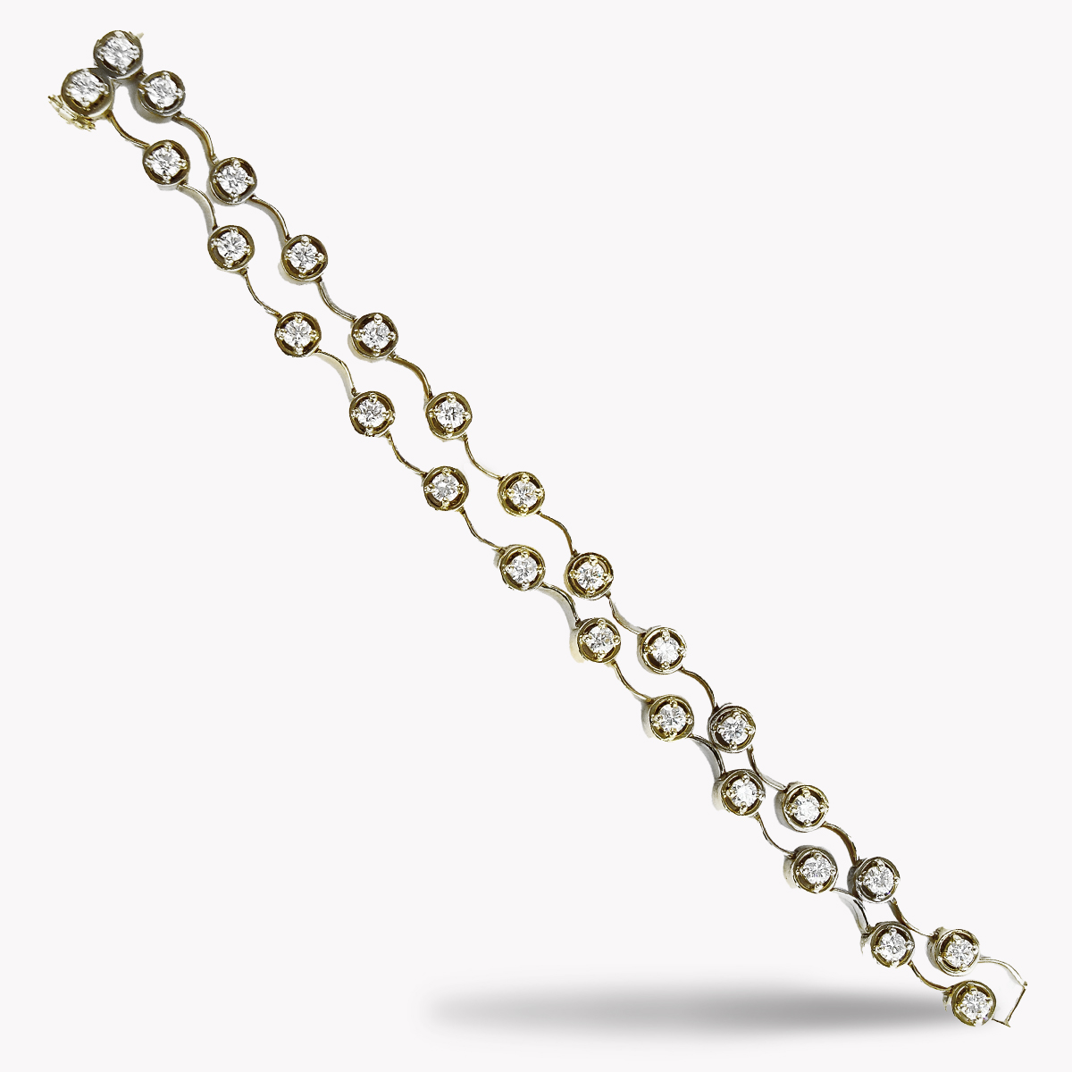 Double Diamond Cascade Bracelet Designed & Handmade by Kaufmann de Suisse in 18kt White Gold featuring 21 Round Brilliant Cut H/VS Quality Diamonds weighing a total of 3.33cts