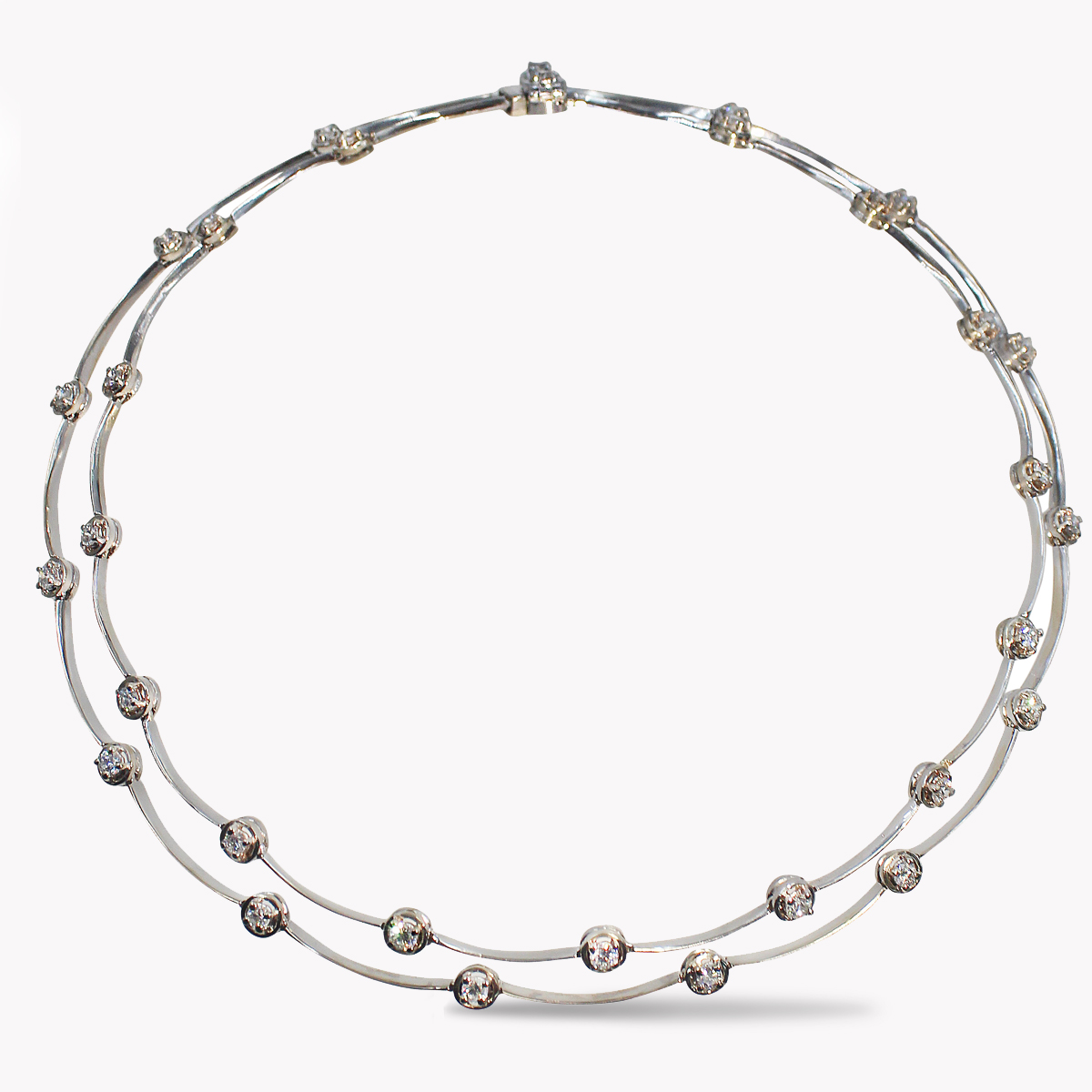 Two Row Diamond Cascade Necklace Designed & Handmade by Kaufmann de Suisse in 18kt White Gold featuring 31 Round Brilliant Cut G/SI Quality Diamonds weighing a total of 4.92cts