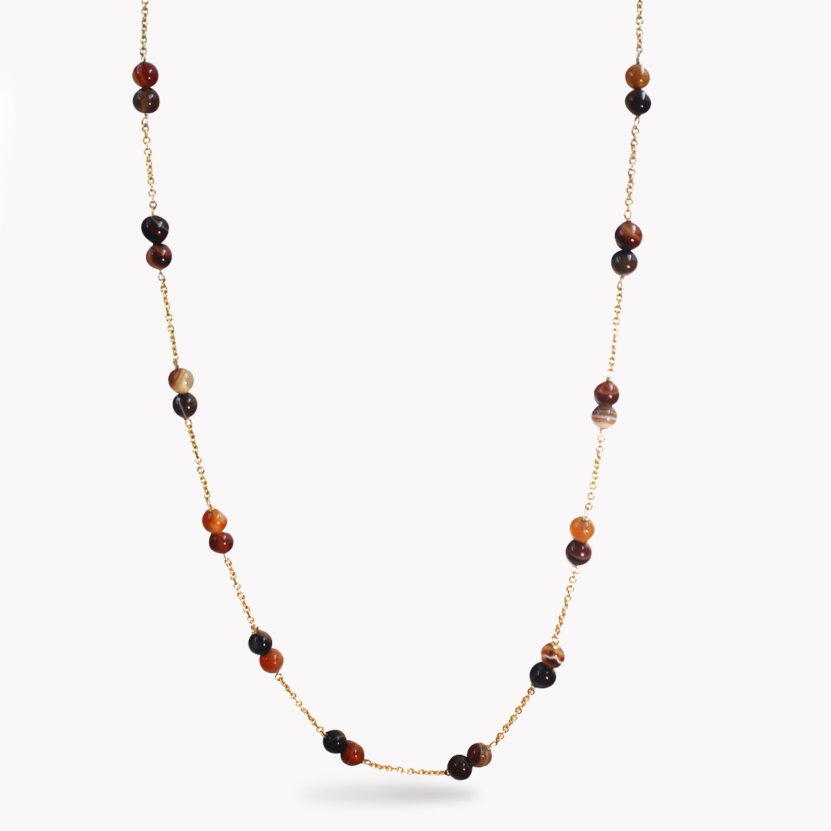 14kt Yellow Gold 1mm Chain Necklace featuring 38 x 6mm Eye Agate Round Beads