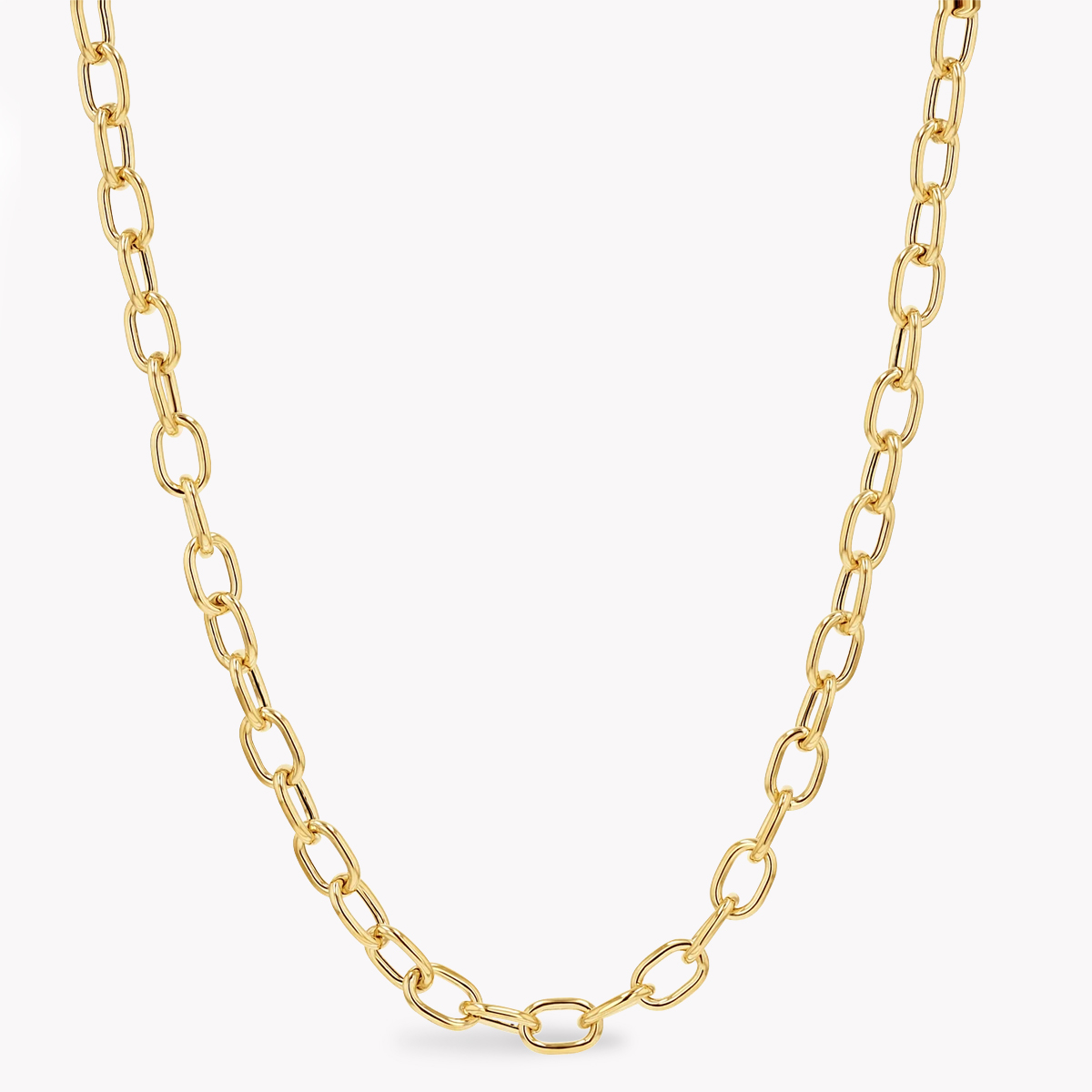 Yellow Gold Link Necklace Designed and Handmade by Kaufmann de Suisse in 18kt Yellow Gold, 32.5 Inches Long and 2/3 of an Inch Wide